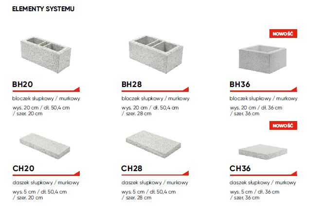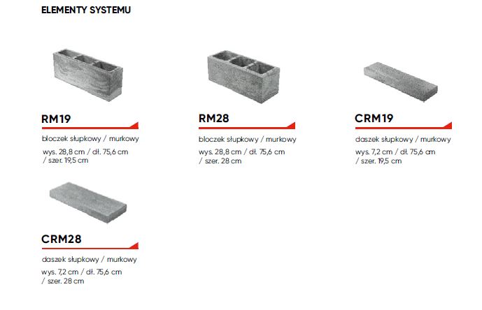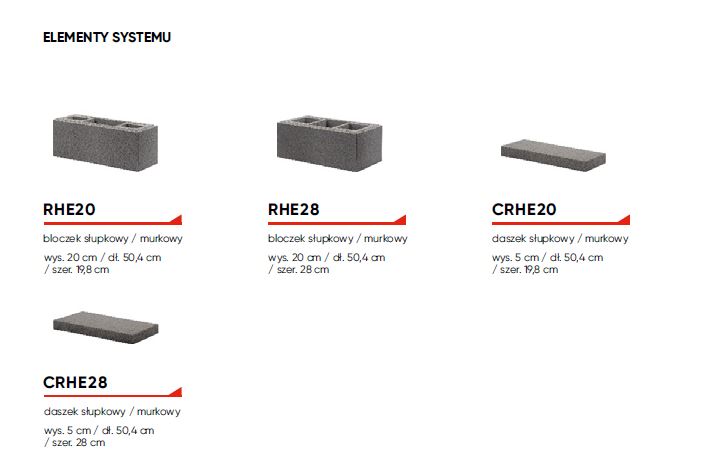 RHE28 bloczek słupkowy/murkowy wys. 20 cm / dł. 50,4 cm / szer. 28 cm