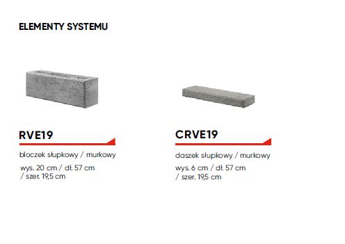 RVE19 bloczek słupkowy / murkowy wys. 20 cm / dł. 57 cm / szer. 19,5 cm