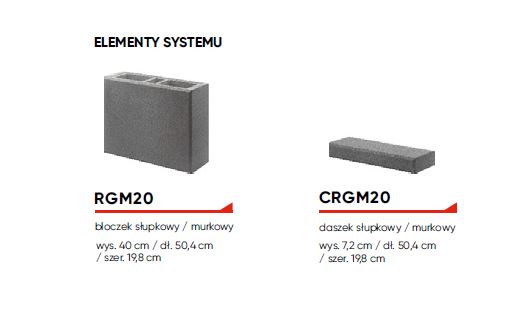 RGM20 bloczek słupkowy/murkowy wys. 40 cm / dł. 50,4 cm / szer. 19,8 cm