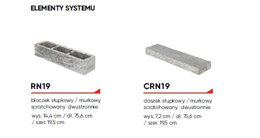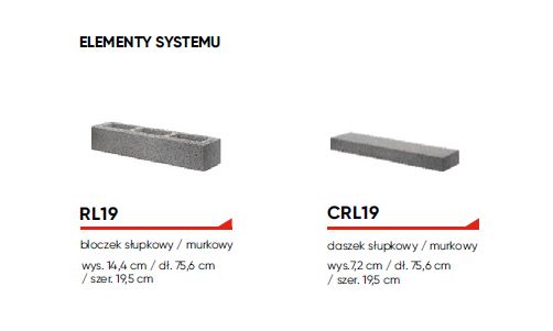 RL19 bloczek słupkowy/murkowy wys. 14,4 cm / dł. 75,6 cm / szer. 19,5 cm