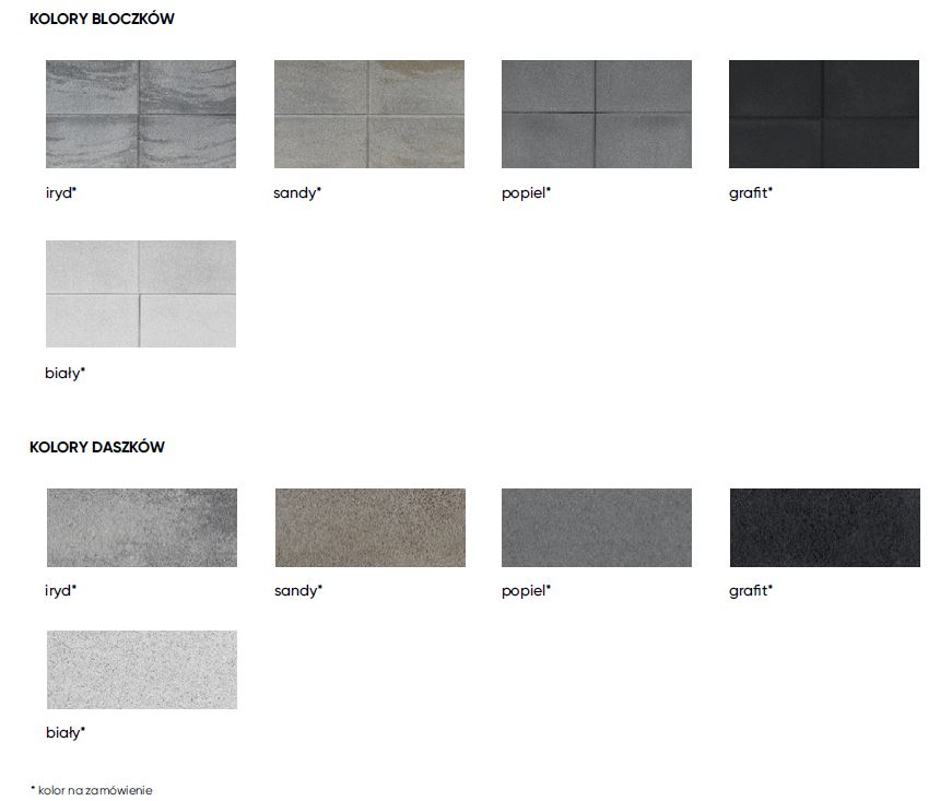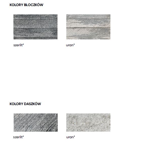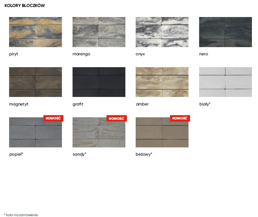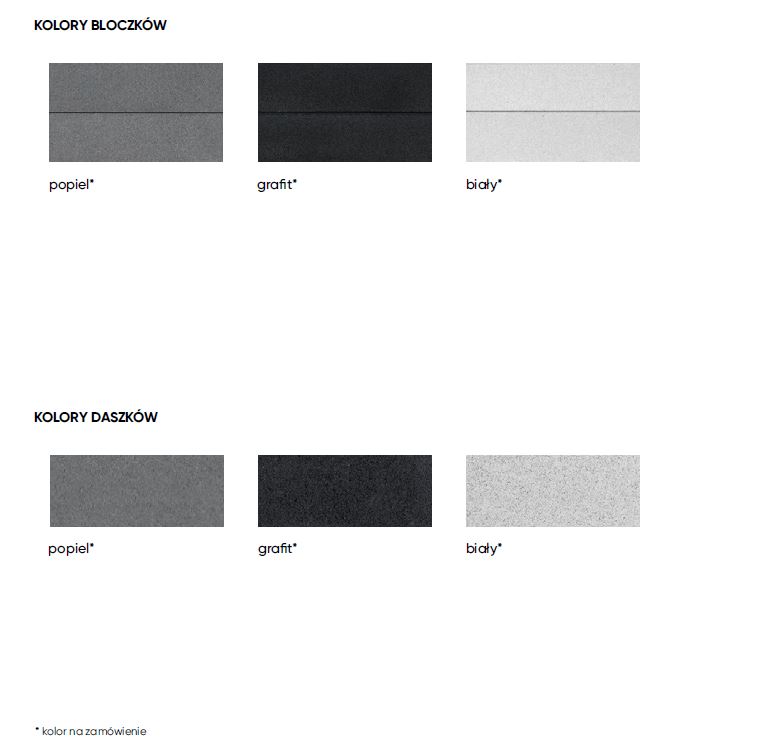 - Kolory dostępne: amber; marengo, onyx, piryt, nero, grafit, biały, magnetyt, popiel, sandy, beżowy
