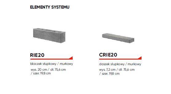 RIE20 bloczek słupkowy/murkowy wys. 20 cm / dł. 75,6 cm / 19,8 cm