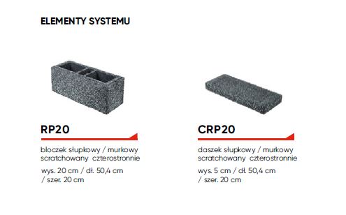 RHE20 bloczek słupkowy/murkowy wys. 20 cm / dł. 50,4 cm / szer. 19,8 cm