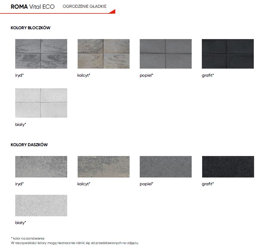 ROMA Vital ECO to ogrodzenie od JONIEC® stworzone z myślą o szybkim montażu i niższych kosztach. Nowe wymiary bloczków umożliwiają budowę ogrodzenia, które jest nowoczesne, a jednocześnie nieszablonowe. Innowacyjna konstrukcja bloczków znacząco redukuje zużycie betonu. Fazowane krawędzie i bogata paleta barw sprawiają, że ten system ogrodzeniowy doskonale dopasowuje się do wymagań współczesnej architektury.