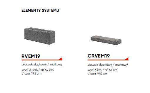 RVEM19 bloczek słupkowy/murkowy wys. 20 cm. / dł. 57 cm / szer. 19,5 cm